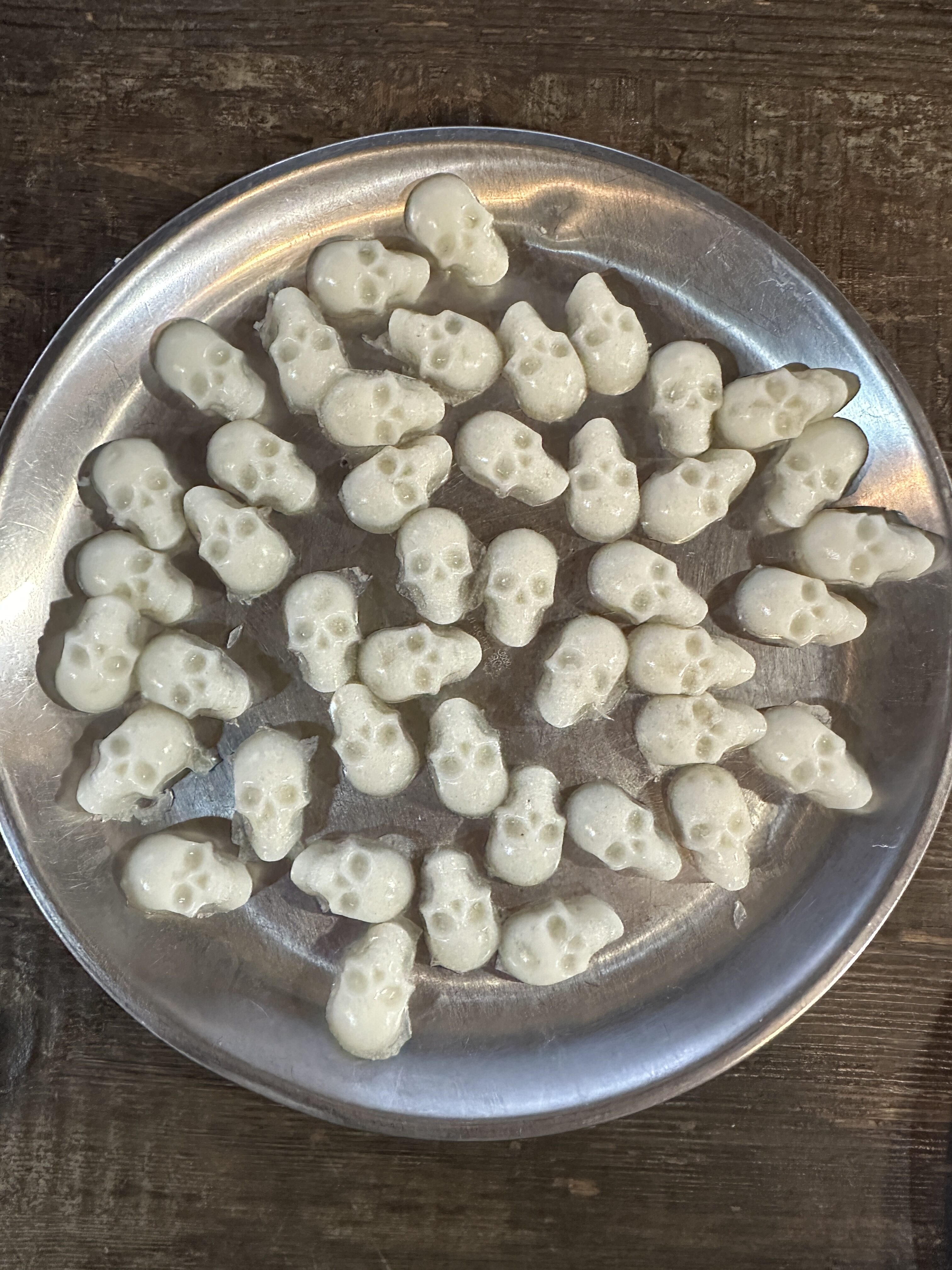 見逃してしまいそうな小さなドクロ(鹿骨出汁とヤギミルクの寒天)を忍ばせたスープです。