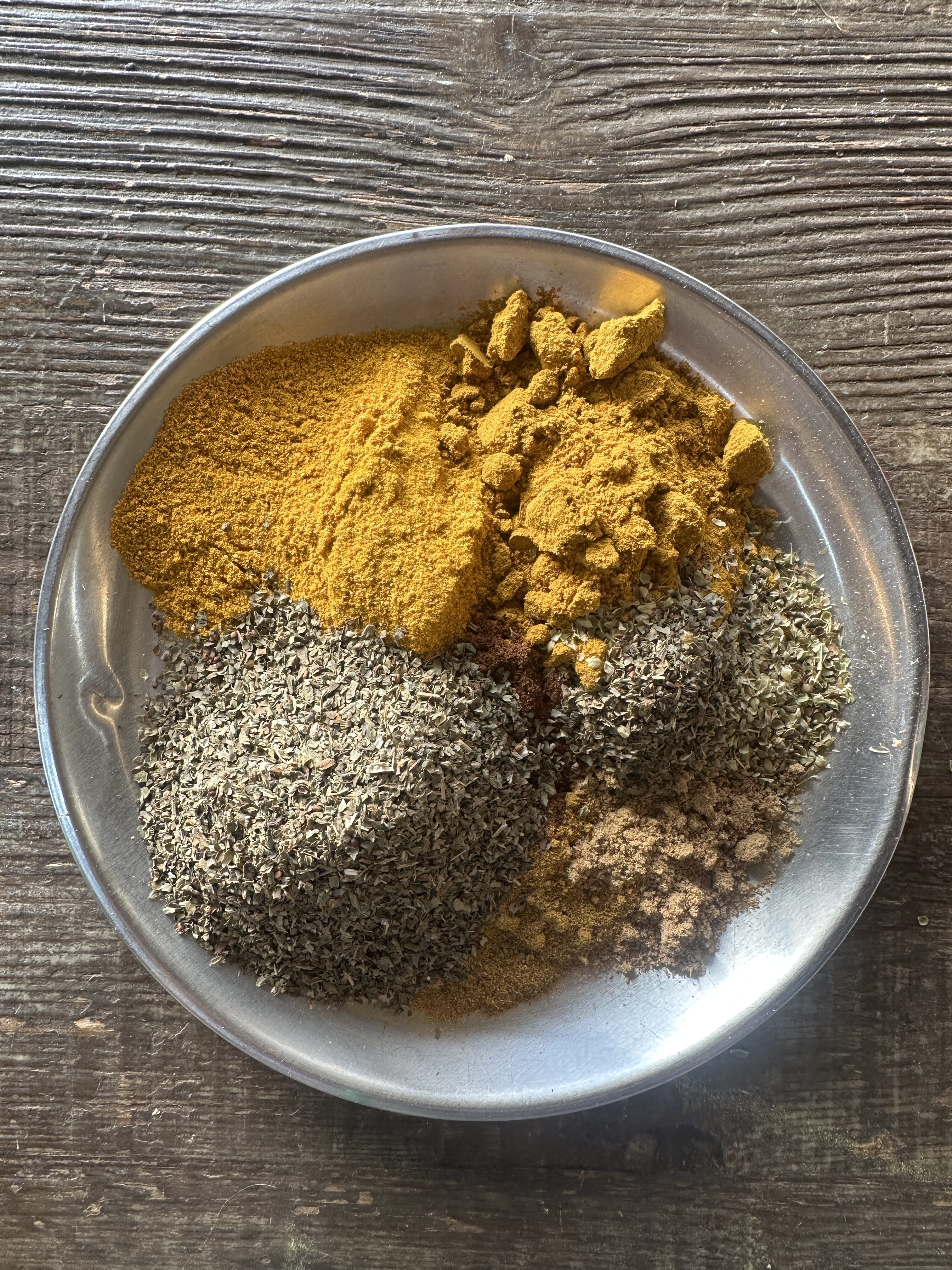 昆布水+スパイス(クミンシード、コリアンダー、バジル、カルダモン、クローブ、コリアンダー、ターメリック、ローリエ、セイロンシナモン、ジャワ生姜