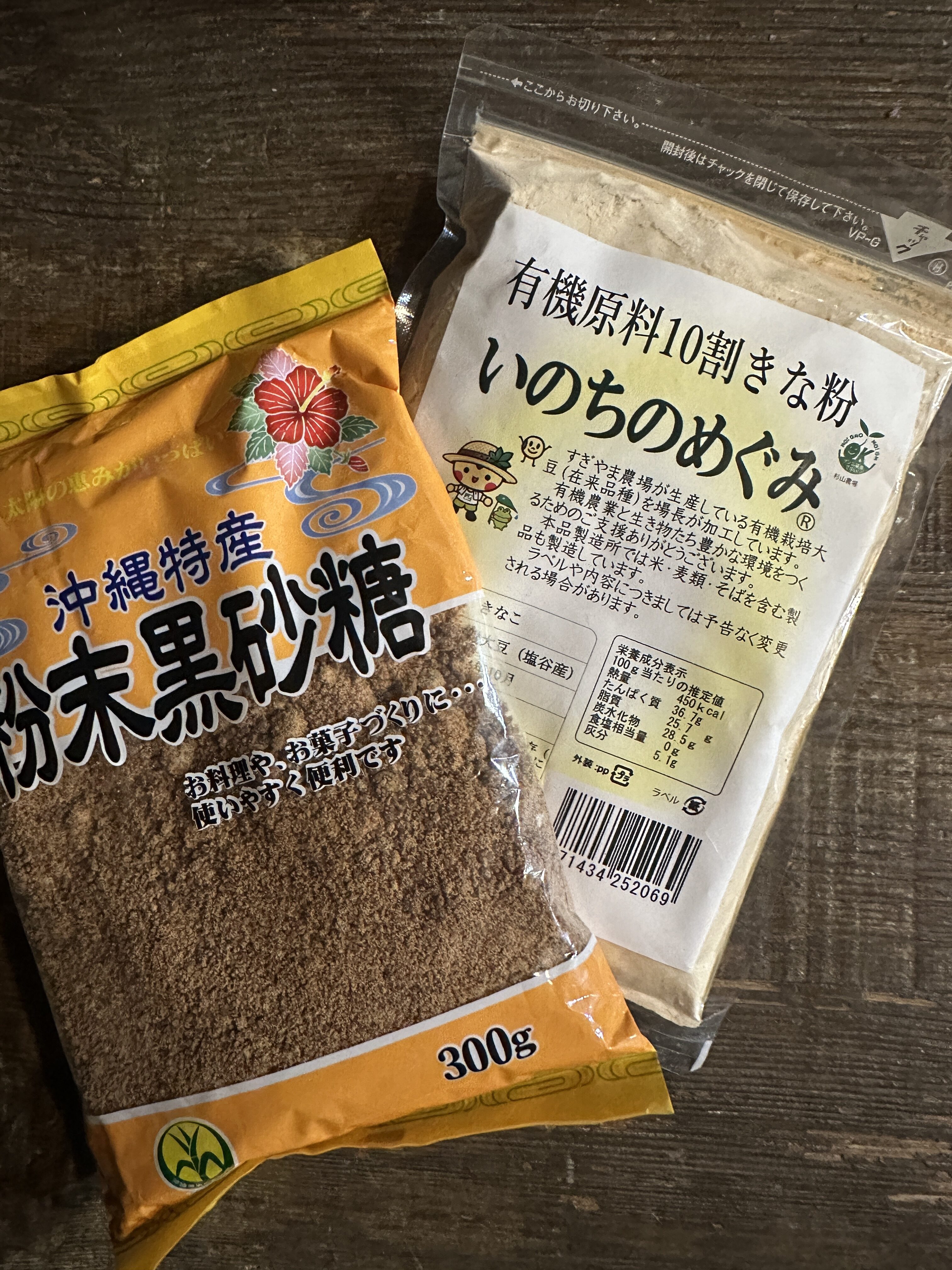 黒糖、きな粉、さつまいも。菊芋、金時人参、白菜、カリフラワー、ブロッコリー、かぶ、舞茸、りんご、かぼす、ジャワ生姜、寒天