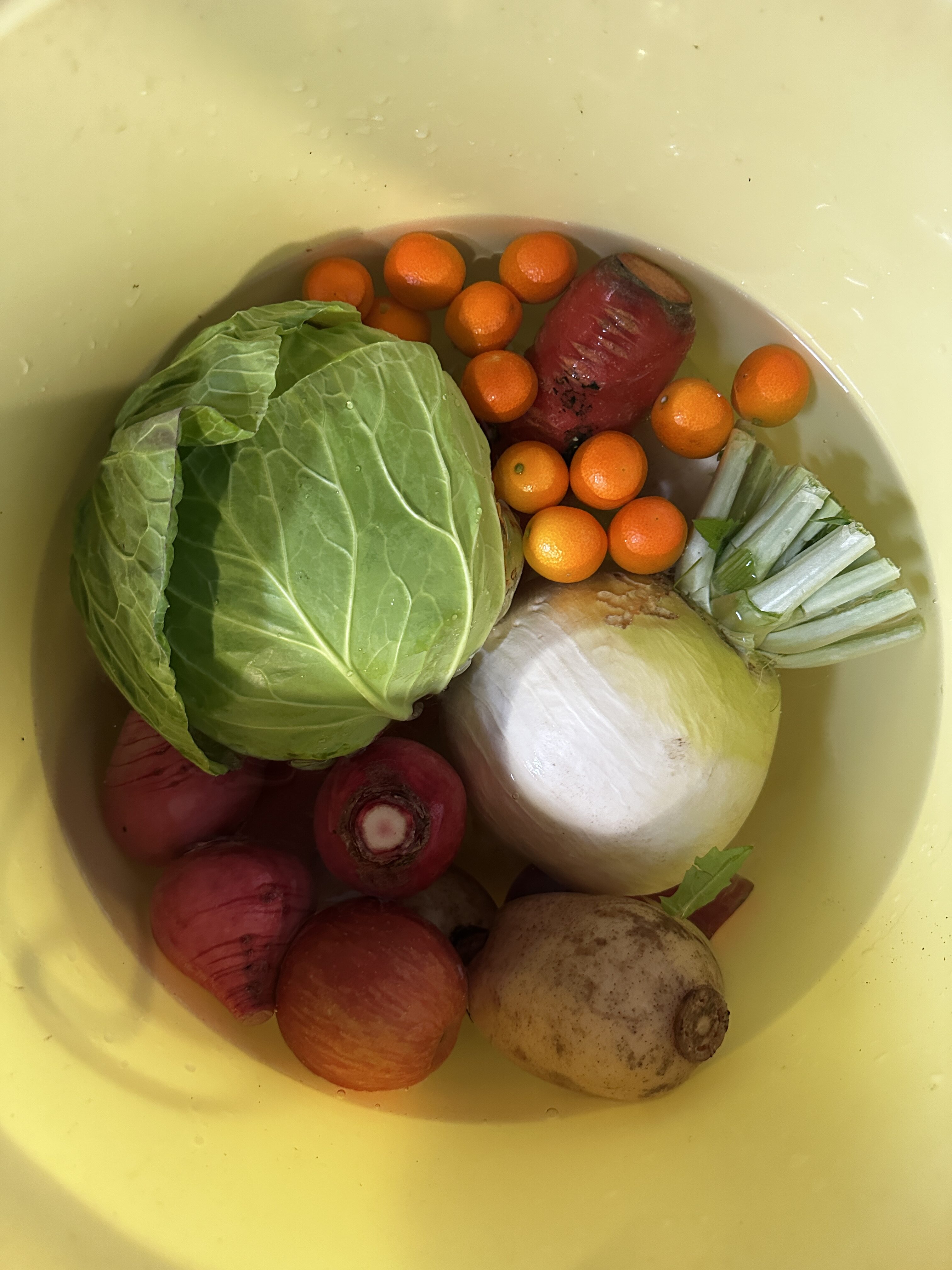 大根、キャベツ、さつまいも、冬瓜、金時人参、ブロッコリー、牛蒡、蓮根、小松菜、ケール、スティックセニョール、エリンギ、金柑、りんご、コリアンダー(生)