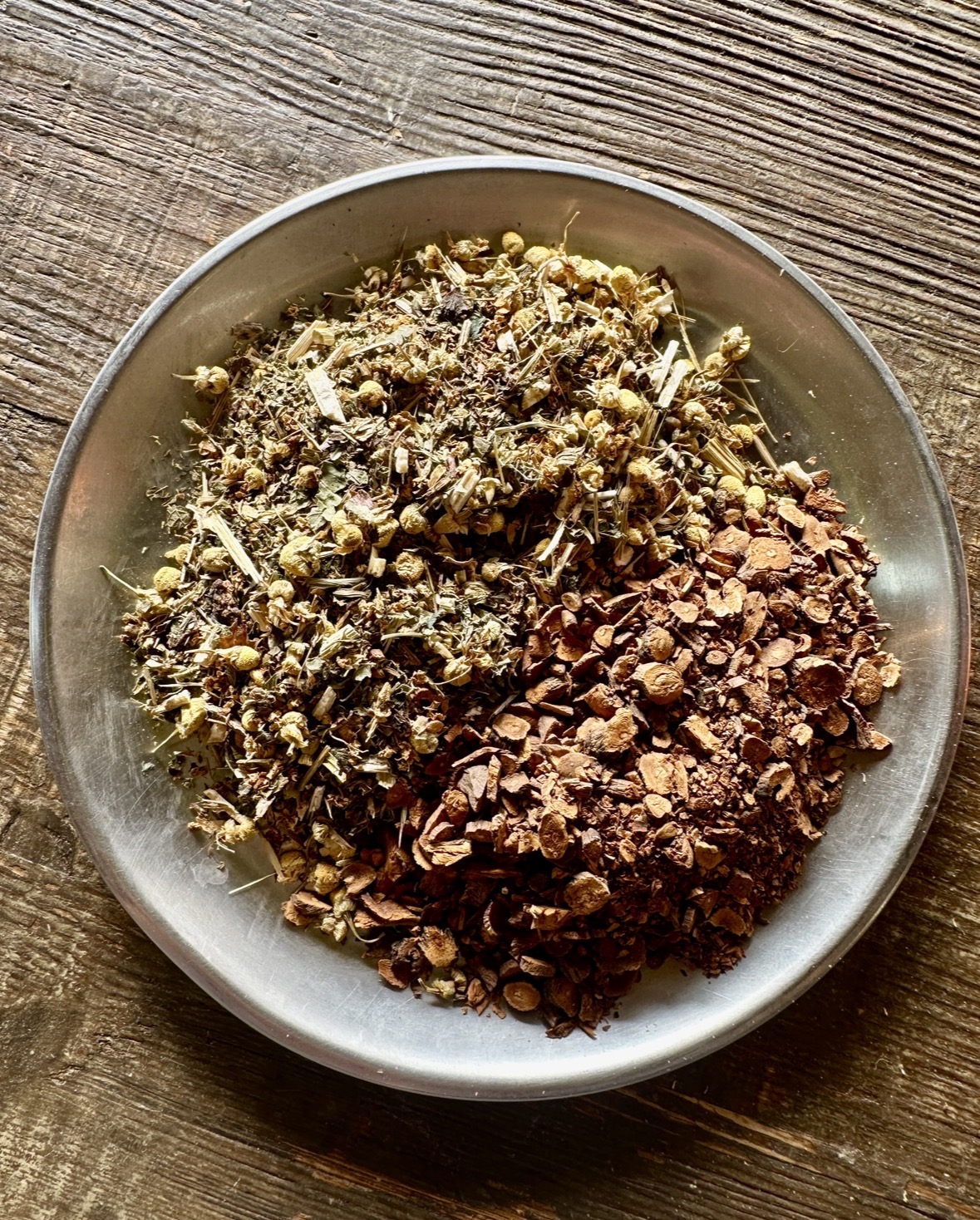 昆布水+ハーブ(ダンデライオン、ジャーマンカモミール、エルダーフラワー、レモンバーム、エキナセア、ネトル)、こごみ、菜の花、明日葉